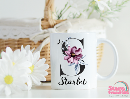 Black-Purple Floral Personalised 11/15oz Ceramic Mug