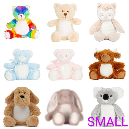 1. 20cm tall plush cuddly bear  Printed and personalised belly.