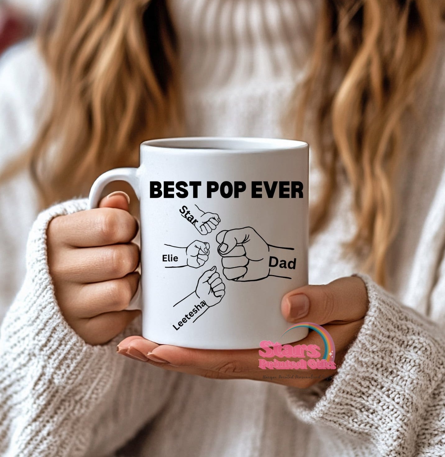 Best Dad/Pop Fist Pump Mug, Custom 1st Father's Day Gift, Custom Mug, Upto 6 Kids Names