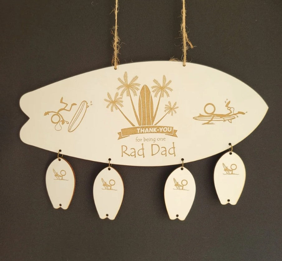 Rad Dad Surf Board Wall Hanger, Custom Wood Sign,Personalised Wall Sign