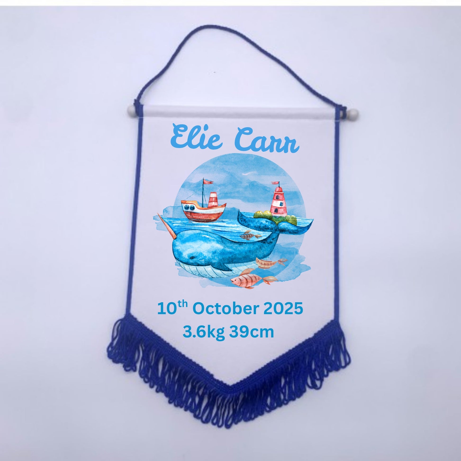 Personalised Baby Birth Stat Bunting Flag | Custom Name Nursery Decor | Newborn Wall Banner | Baby Shower Gift- Sealife