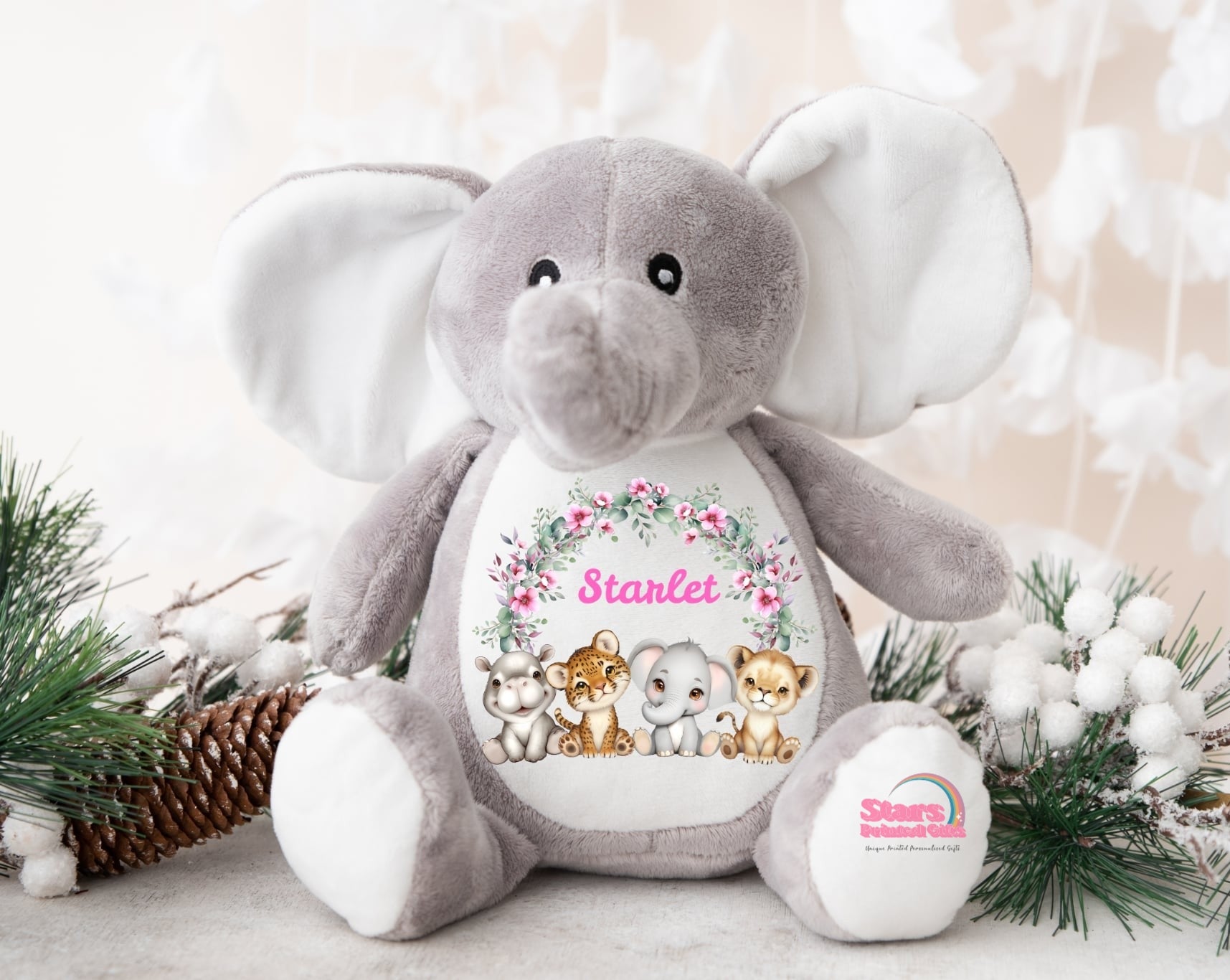 Personalised Elephant Pluah B, Custom Printed Keepsake Bear.