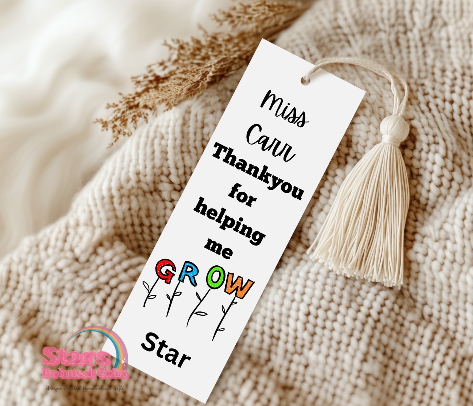 Personalised Teacher Aluminium Bookmark | Teacher Thank You Gift | Custom Name Bookmark | End of Term Gift for Teacher or Educator - Grow