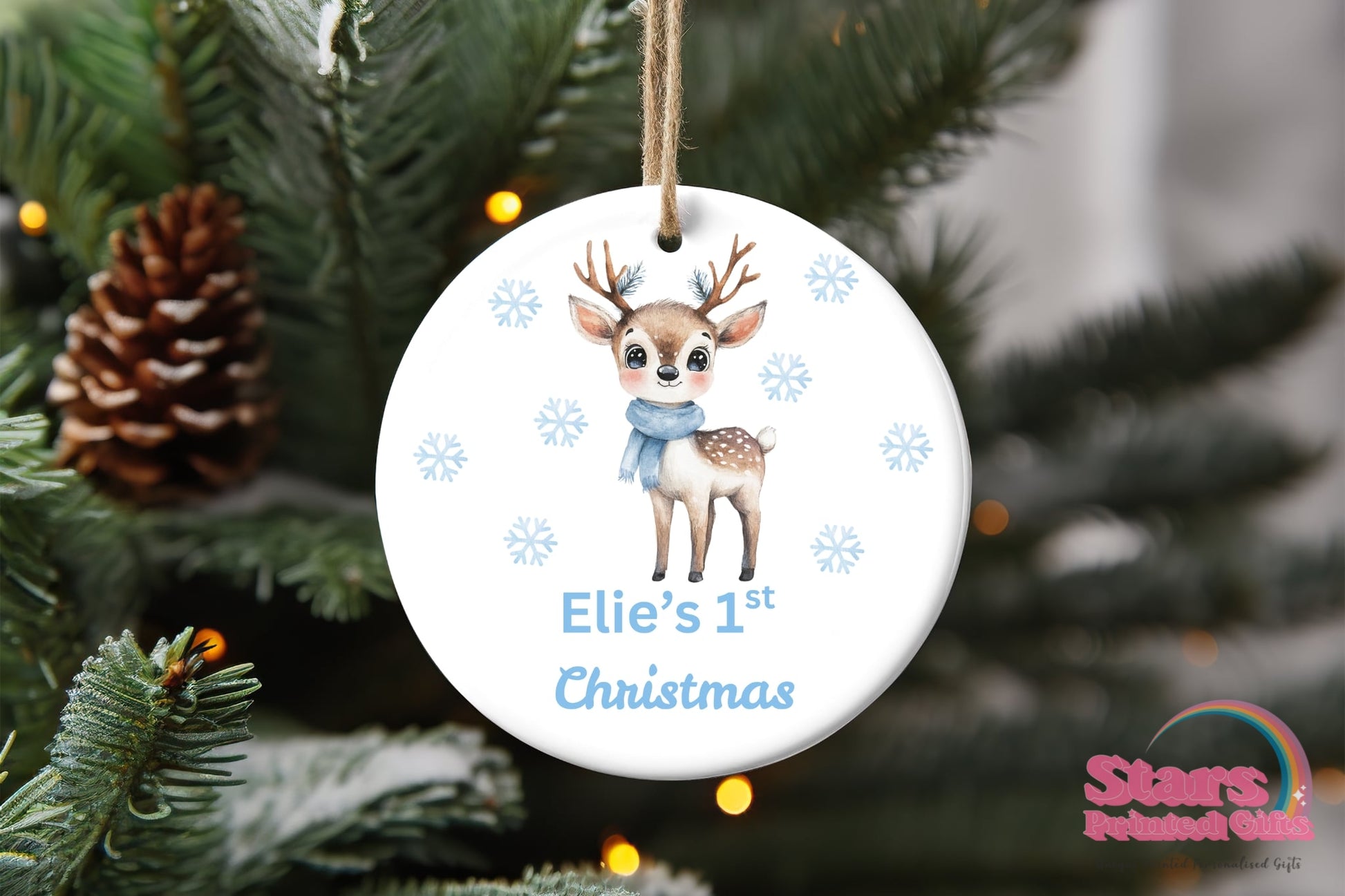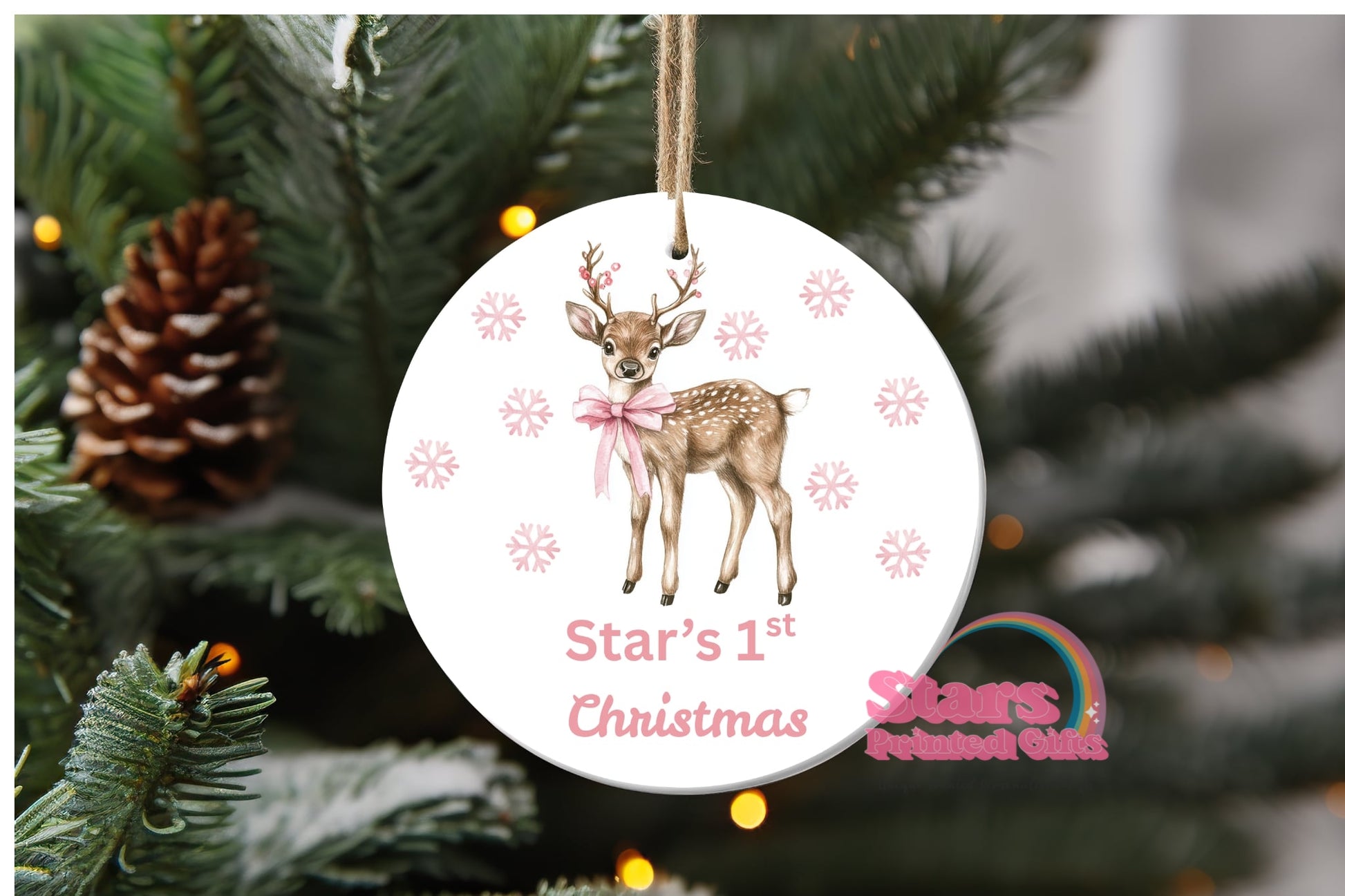 Personalised Christmas Ornament – Custom Ceramic or Aluminium Ornament – 1st Christmas Keepsake Decoration – Deer
